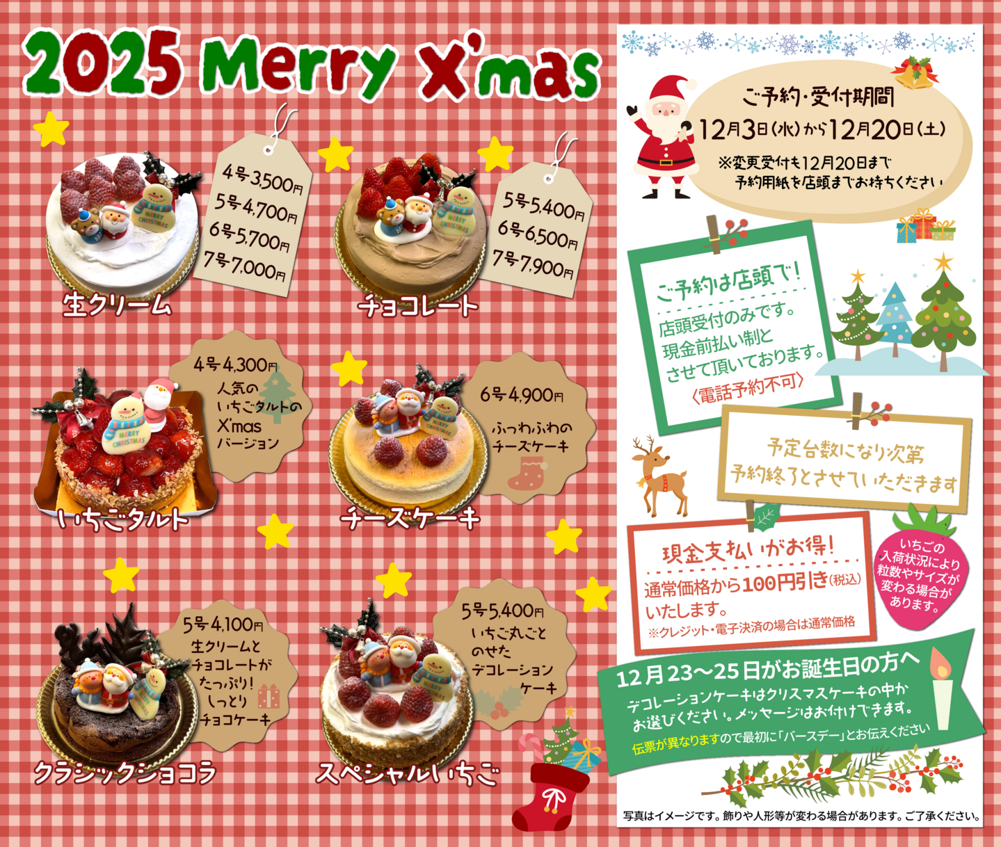 ※デコレーションケーキはクリスマスケーキの中からお選びください。